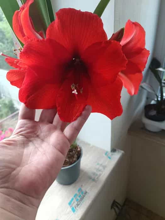 Купила амариліс “Велорія” у 5 кольорах — білому, червоному, рожевому, Ruby Star, Dark Obsidian. Вже через місяць після посадки з’явилася сильна стрілка, а квіти вийшли просто неймовірні: великі, соковиті, просто вау!