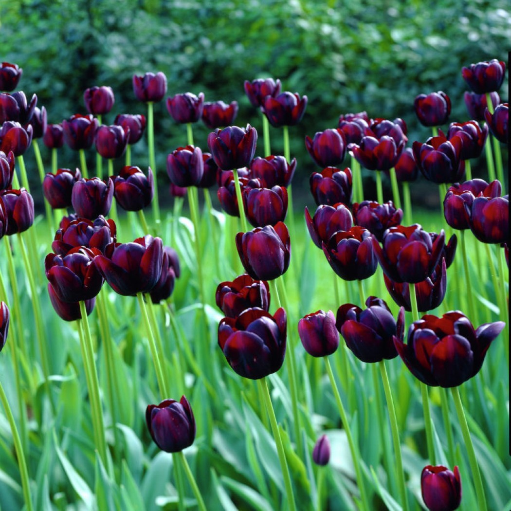 Тюльпани Queen of Night можна висаджувати навесні, і якісні цибулини все одно здатні порадувати красивим цвітінням уже в цьому сезоні. Після посадки в прогрітий ґрунт вони швидко вкорінюються та одразу спрямовують сили на формування міцних пагонів і бутонів.