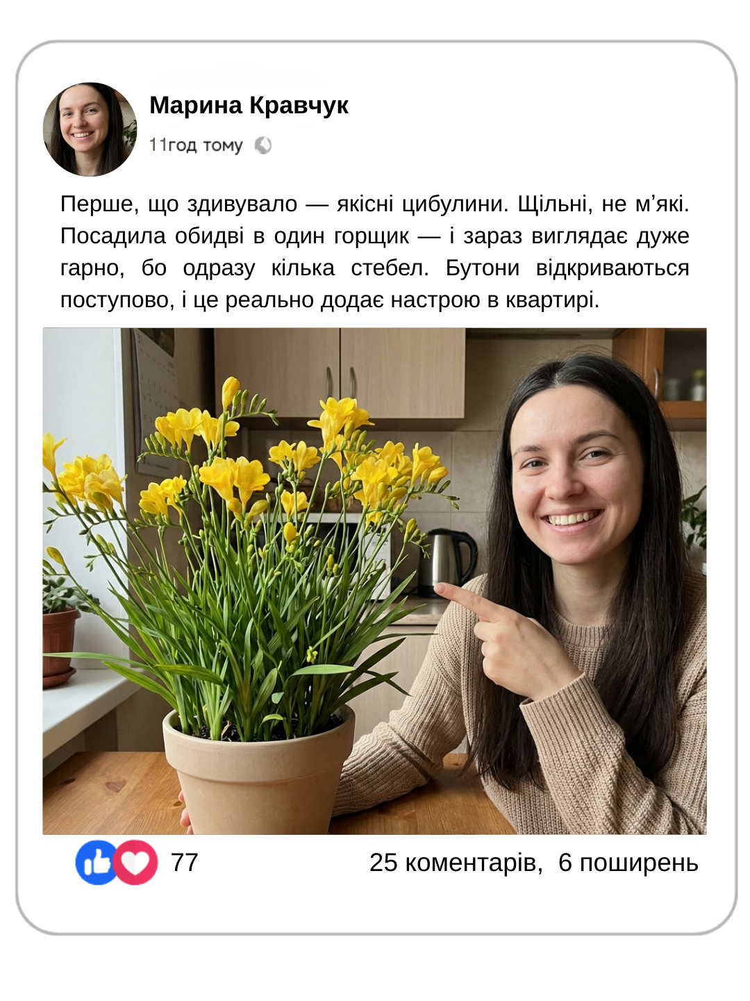 Це чесний шлях від цибулини до цвітіння — без готових “підкручених” рослин.