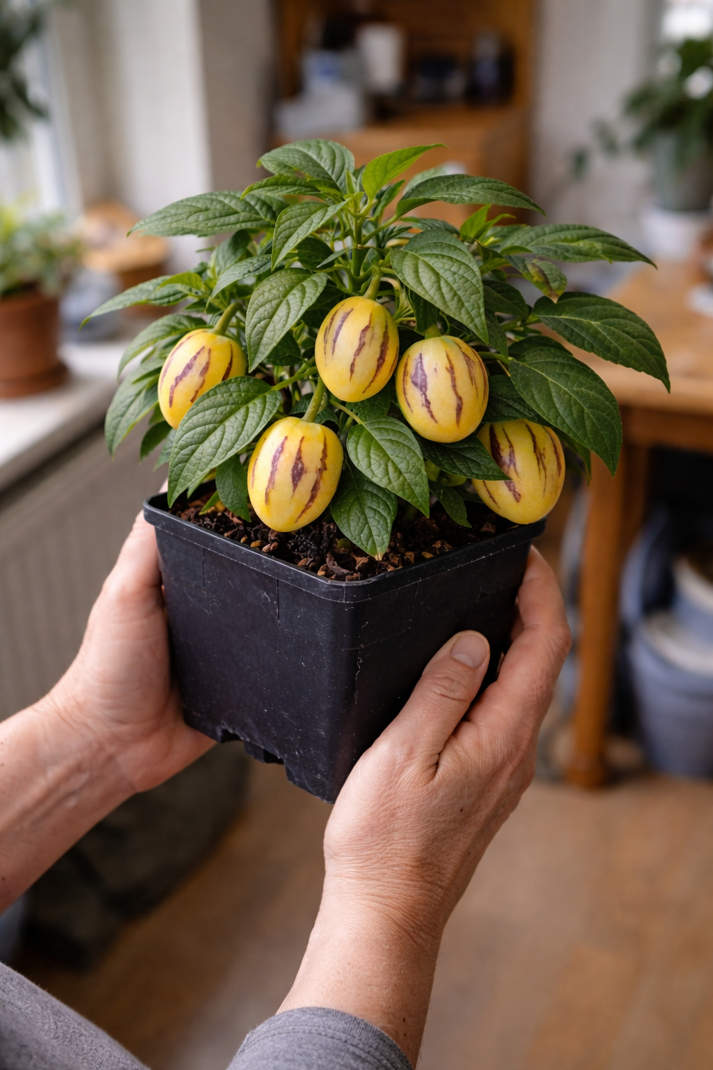 Поставте пепіно «Рума» на добре освітлене підвіконня або засклений балкон. Оптимально — багато розсіяного світла без різких протягів.