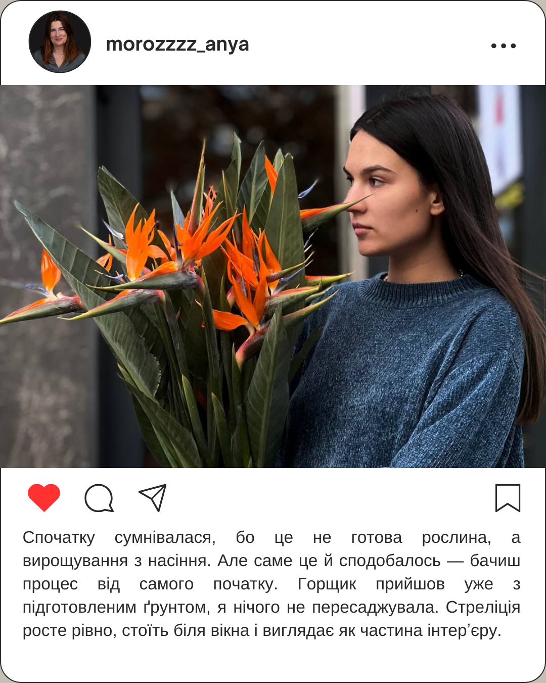 У королівської стреліції вони помаранчево-сині й виглядають як живий арт-обʼєкт, який одразу привертає увагу.