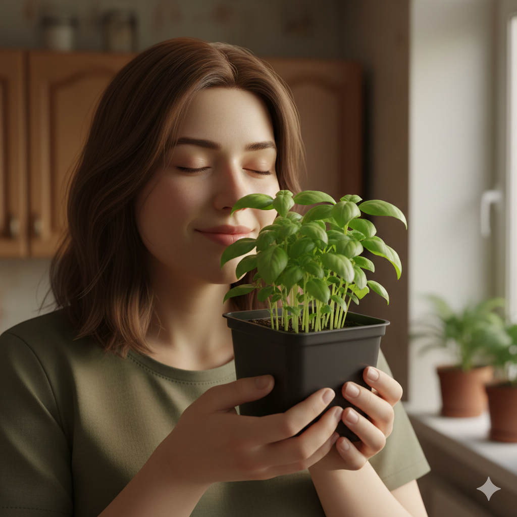 Базилік - чудова, ароматна трава. Яскравий, насичений аромат базиліка, фарбує будь-яку страву, будь то овочевий салат або основне блюдо, його додають у піцу та пасту. Запах цієї пряної трави поєднує в собі мелісово-цитрусові нотки і має саме свій, неповторний аромат.